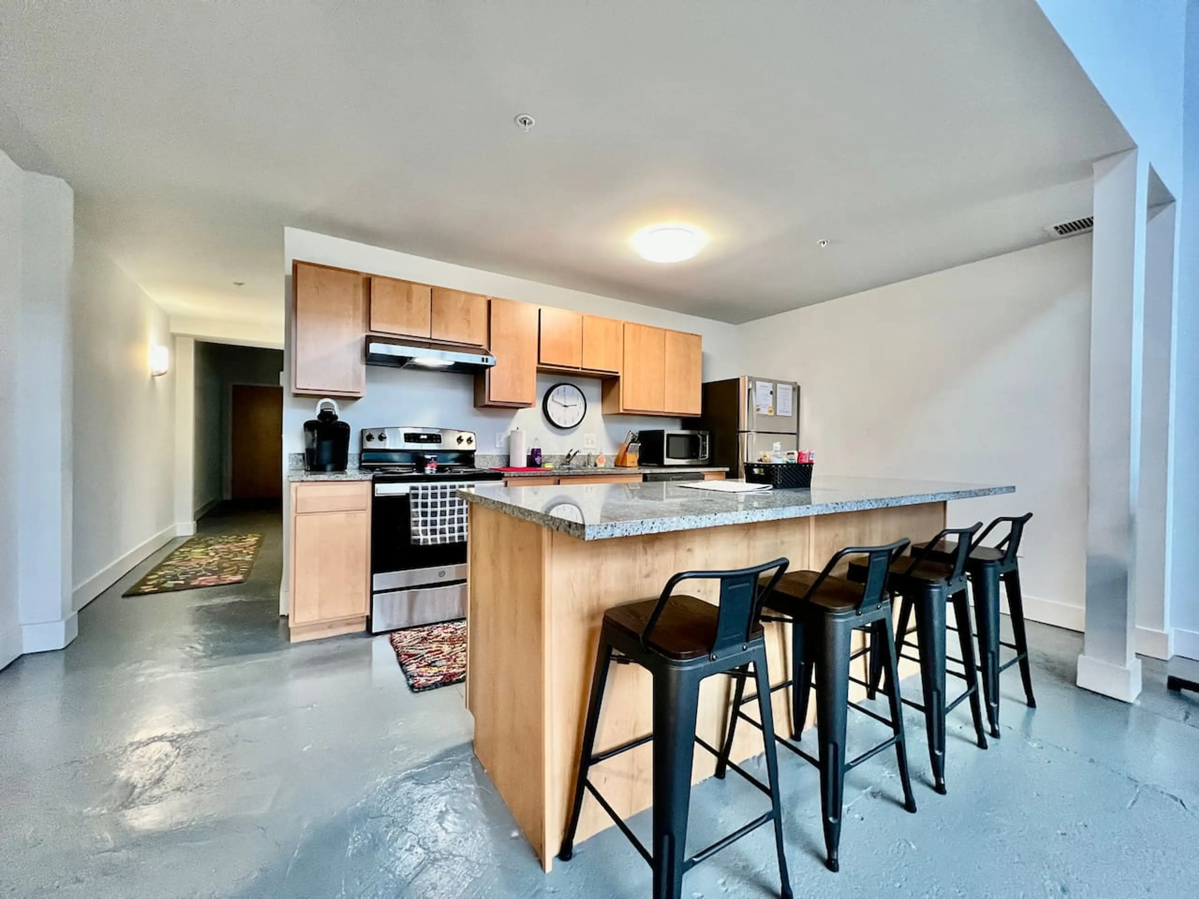 The location was great. I arrived late and it was a little difficult to identify which building I should be in, but once I figured that out getting in and out was really easy. Here are my three notes for other renters:1. Another review mentioned finding a parking spot right in front of the apartments was difficult at night and that is true so it may be that your only option is to park in front of the brewery. But parking during the day is really really easy. 2. Locking the door when leaving requires you to do the same process as unlocking the door when entering, so be sure to either use the keypad or use the app on your phone to lock the door. Otherwise it won’t just lock behind you as you might assume. 3. There aren’t a ton of cooking amenities. So if you’re planning to do something special or cook specific things while you’re there, you may want to do an inventory of the kitchen prior to doing your shopping or planning just to make sure you have what you need. I made lasagna one night while I was there, for instance, and I needed to buy a dish to bake it in. I wanted to do a charcuterie tray as well, so I borrowed a platter from a friend that lives in the area in order to do that. Not a big deal, but just requires some prep and creativity if you’re planning to cook.