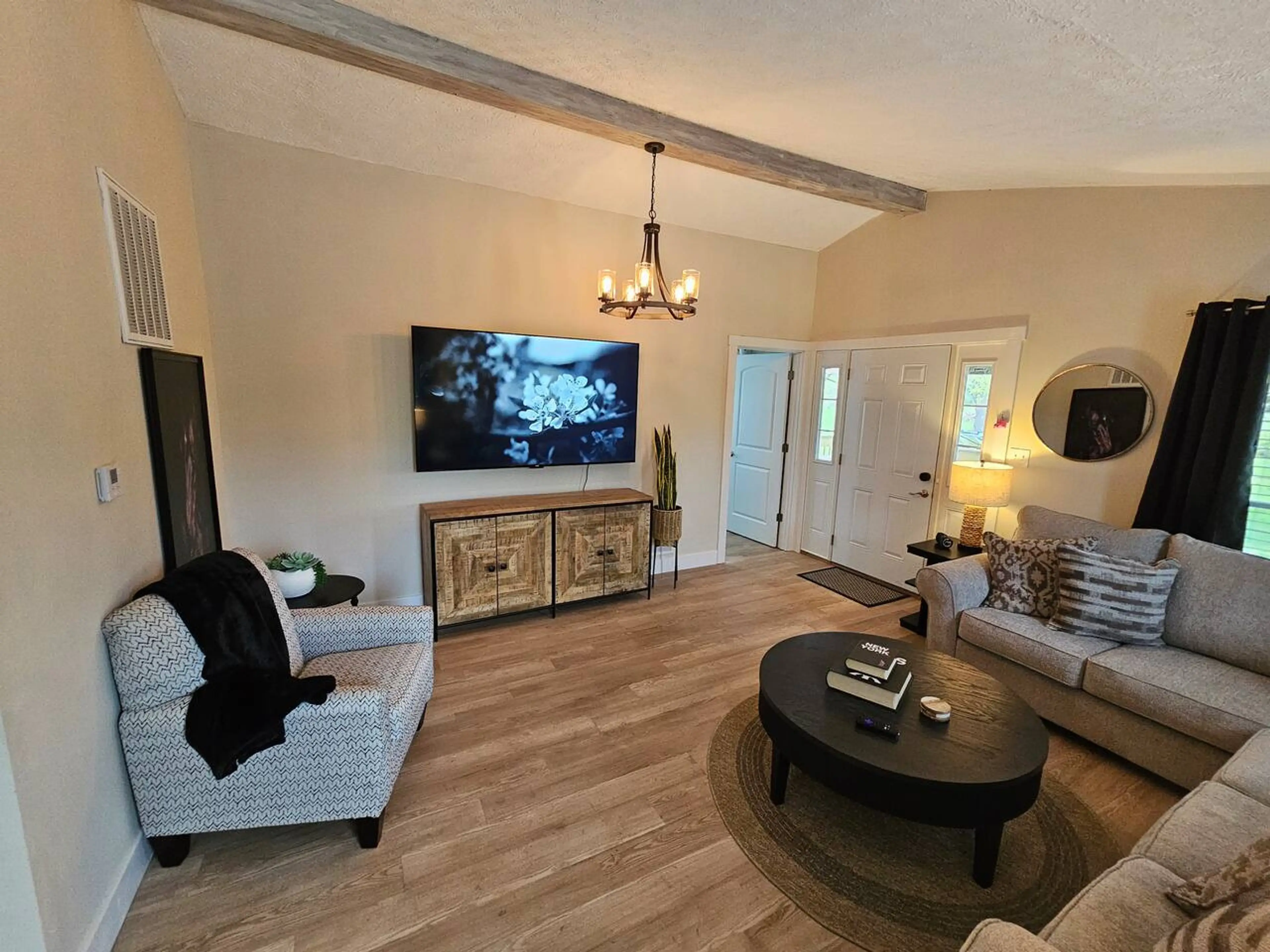 A great spot to renew your soul. Fantastic for a quick getaway or for a long stay. Great for out of town workers with a large private parking area. The home is quiet and super convenient. It is located in the Lakota school district and features three bedrooms and one full bathroom with on-site laund...